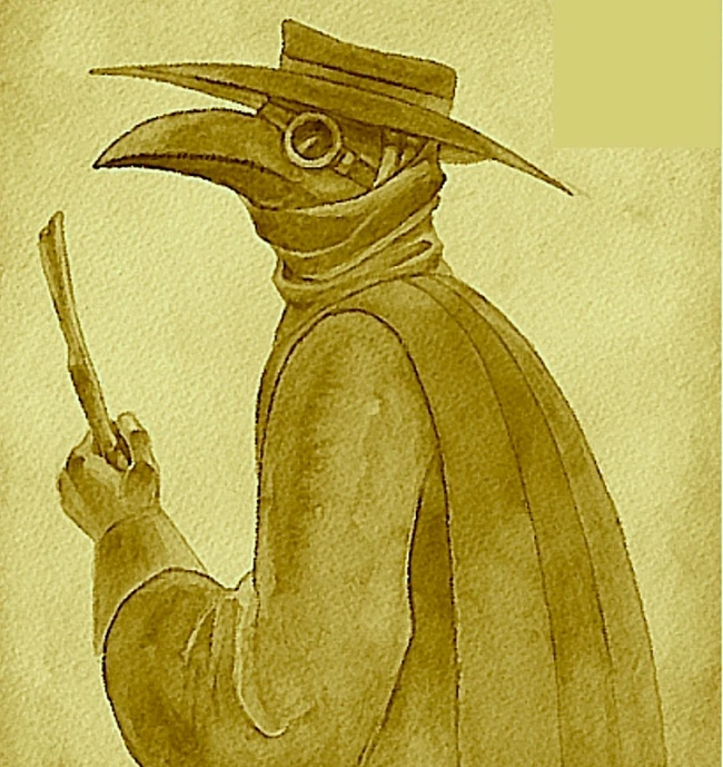 0Pandemia e anunţată de nişte gâşte negre, numite călugăriţe (Branta leucopsis), care umplu malurile Dâmboviţei, băgând groaza în oameni, ca, finalmente, să-şi facă apariţia însăşi Ciuma, reprezentată ca o femeie cu cioc şi labe de gâscă...