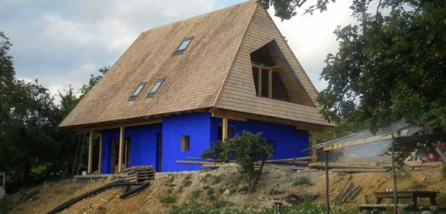 Donatien şi Oana au făcut ei înşişi fundaţia, pereţii, acoperişul, cu materiale tradiţionale, cărămizi de la Iaşi, lemn de la Borsa.
