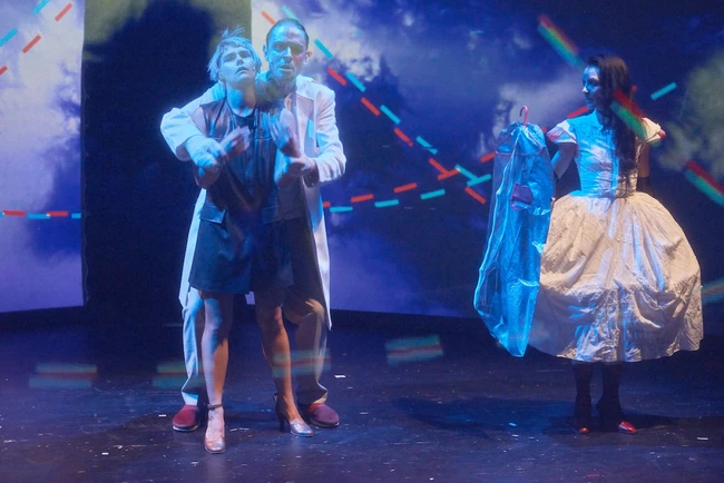 Or, exact de la aceşti „toţi ceilalţi colaboratori“, adică de la contribuţiile lor, încep surprizele. Fiindcă din colaborarea dintre ei, regizor şi actori se naşte marele cuantum de originalitate al spectacolului. Nu, nu mai avem un simplu scenograf, ci creatori ai unui spaţiu (scenic) - este vorba despre Carmencita Brojboiu şi Rancz András -, avem un creator de visual design - Rancz András, o autoare de grafică digitală - Szderjesi Szidónia, un light designer - Romeo Groza. Lor alăturându-li-se un compozitor de muzică de scenă - Kónya-Utó Bence, o coordonatoare a mişcării scenice - Ötvὄs Kinga.