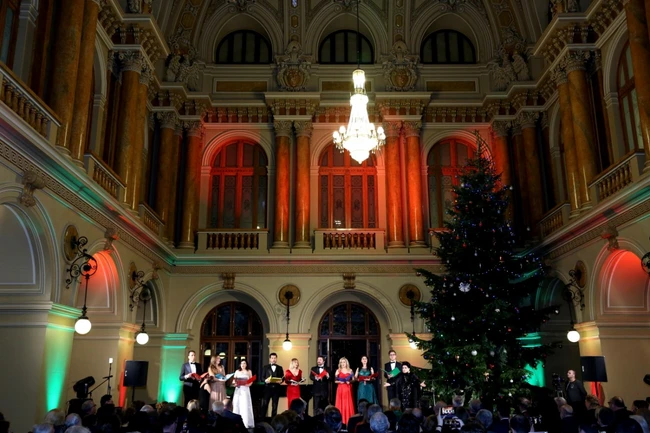 Cei opt performeri, cărora li s-a alăturat Doru Todoruţ, au adăugat secţiunii „clasice” a concertului un program de colinde tradiţionale din repertoriul românesc şi universal, care a antrenat în chip entuziast şi asistenţa. În acompaniamentul pianistic al Ioanei Maxim, s-au cântat „Iată vin colindătorii”, „Moş Crăciun cu plete dalbe”, „O, ce veste minunată”, dar şi „O Tannenbaum”, „Stille Nacht” sau „Joy to the World”. Momentele inedite au fost reprezentate de liricul „Noaptea de Crăciun” (Ramona Păun), de colindul interpretat de Florentina Soare, de urările neaoşe româneşti (Alexandru Constantin alături de ceilalţi colegi, apoi Iustinian Zetea şi Doru Todoruţ, cel din urmă susţinut de dansul popular al lui... Andrei Nicoară). Clipe însufleţitoare care au dăruit concertului conturul festiv dorit, subliniat de aplauze frenetice.