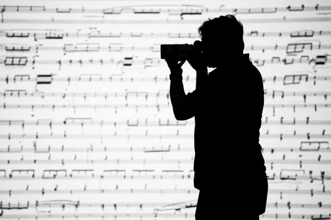 Oamenii Festivalului: în faţa partiturii, fotograful Alex Damian, surprins de Ştefania Burcea