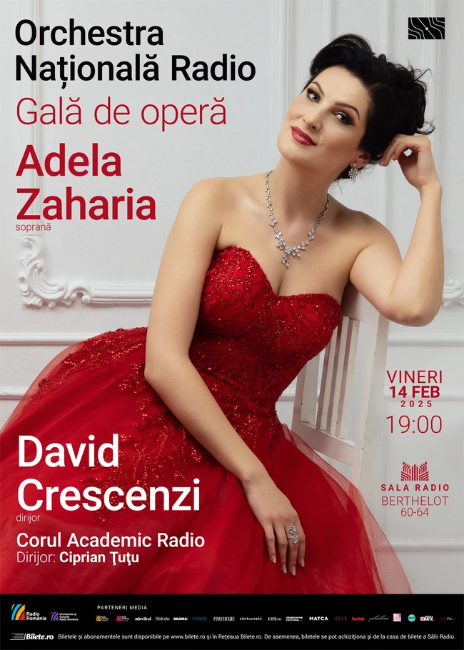 0În compania Orchestrei Naționale Radio, a Corului Academic Radio aflate sub conducerea italianului David Crescenzi, soprana Adela Zaharia, câștigătoare în 2017 a Premiului I la marele concurs Operalia-Plácido Domingo, a susținut chiar de Ziua Îndrăgostiților o Gală de operă, un program scurt, de numai patru arii, dar intens, dedicat unor pagini de extremă dificultate din teritoriile belcantoului pur rossinian și ale belcantoului romantic belliniano-donizettian. O selecție concentrată, menită să-i pună în valoare calitățile, un afiș la care nu se încumetă oricine într-o singură seară.