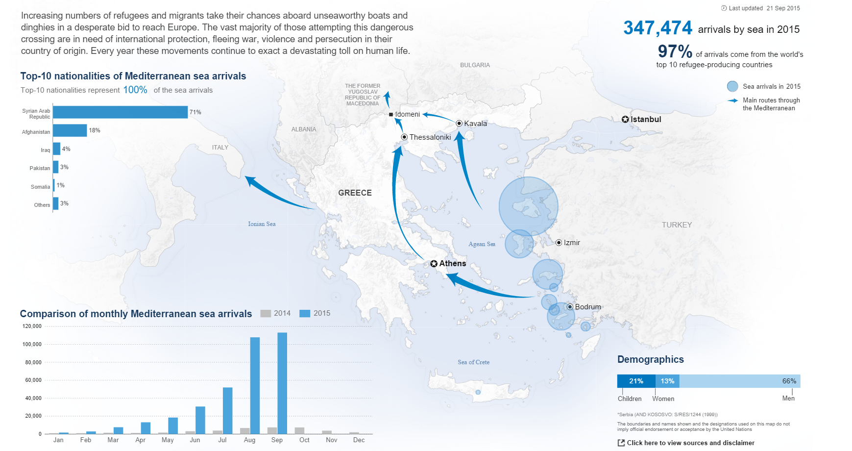 Arrivals by Sea and Deaths in the Mediterranean: 1 January – 15 October, 2015