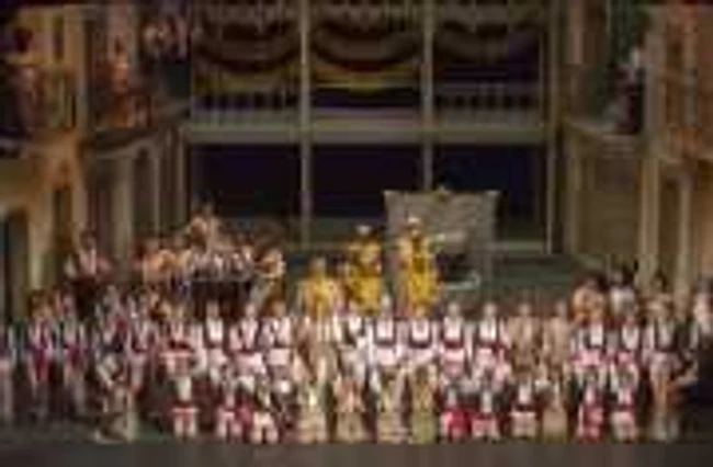 Surpriza vine însă prin „legarea” directă cu ultimul act, pereţii de stâncă „deschizându-se” pentru a face loc ambianţei din faţa arenei, inundată de lumină „albă”, cu afişe înfăţişând toreadori şi tauri furioşi, cu o poartă largă prin care intră, după o defilare somptuoasă, toţi cei implicaţi în corrida, precum şi spectatorii îmbrăcaţi de sărbătoare; iar totul este precedat de o strălucitoare secvenţă de flamenco, dansată pe muzica suitei Arlesiana de Bizet, balerinii fiind ei înşişi cuceriţi de ritmurile şi mişcările atât de speciale, de mare efect; şi aici a frapat un „insert” clasic, mândrul toreador şi o suplă balerină în negru, cu coarne simbolizând taurul, „luptându-se” cu graţie printre interpreţii dansului popular spaniol. Iar când lumea intră la corrida, Carmen rămâne în faţa porţii, aşteptând parcă ostentativ întâlnirea cu Jose, cei doi se înfruntă violent, el găseşte (cam... brusc) pe jos un cuţit (pe care şi Carmen îl văzuse, anticipând poate deznodământul), o ucide, iar pe ultima lui replică - „puteţi să mă arestaţi, eu am ucis-o” - apar... Frasquita şi Mercedes, încearcând să-i smulgă cuţitul cu care... este şi el ucis - din greşeală sau chiar Jose se aruncă în acel tăiş fatal? Nu ştiu, dar finalul este surprinzător, închizând însă „cercul” întâmplărilor derulate în timpul Preludiului operei, în care Don Jose comite o crimă, aşa cum spune nuvela lui Merimee, aşa cum... nu-l gândeşte compozitorul. Adevărul este că nu prea sunt clar rezolvate nici evadarea din actul I şi nici „descoperirea” Micaelei de către contrabandişti... Costumele multicolore păstrează, în majoritate, caracteristicile din Peninsulă, rochiile având culori tari, cu mult roşu, parte identice (de ce, nu am înţeles), parte însă de cu totul altă factură şi croială, cumva „rătăcite” printre cele bogate, cu volane; mai toate fetele poartă pantofi cu baretă, dar Carmen apare iniţial în picioarele goale, iar Micaela are cisme negre cu toc, chiar şi când urcă muntele, deşi este „o tărăncuţă”. Soldaţii au uniforme în crem şi galben, copiii sunt îmbrăcaţi lejer, ca în secolul XIX, (poate) ca şi azi, Carmen este îmbrăcată provocator şi cu gust, Don Jose schimbă uniforma cu veşmântul negru, iar Escamillo poartă costume de veritabil toreador, elegante, sclipitoare. Corul este permanent implicat scenic, dar, asemeni copiilor extrem de numeroşi, au unele gesturi stereotipe sau rămân în stop-cadru, cu spatele la eroii dramei (actul III), iar soliştii construiesc personaje credibile, cu trăiri intense şi izbucniri încărcate de patos, disperare sau dramatism.