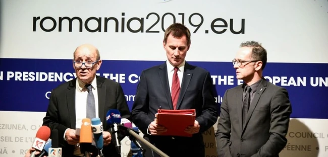„Franţa, Germania şi Marea Britanie, în acord cu angajamentul lor ferm şi cu eforturile continue de păstrare a Planului Comun Comprehensiv de Acţiune (JCPOA) aprobat prin Rezoluţia 2231 a Consiliului de Securitate al ONU, anunţă crearea INSTEX SAS (Instrument for Supporting Trade Exchanges)... în scopul facilitării comerţului legitim între operatorii economici europeni şi Iran“, se spune în Declaraţia Comună semnată de membrii Grupului E3 în numele cărora semnează miniştrii de Externe Jean-Yves Le Drian, Heiko Maas şi Jereny Hunt (la finalul articolului aveţi textul Declaraţiei de la Bucureşti).