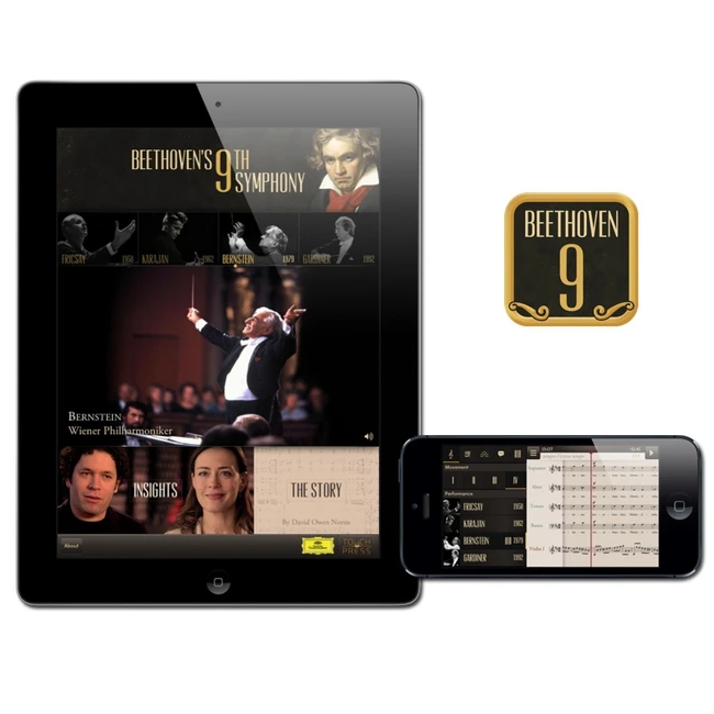 Mai precis, în schimbul a 13 euro pentru ipad şi 7 euro pentru iphone (preţurile maximale pentru full version), utilizatorul are o experienţă ce poate părea ruptă din filmele SF: posibilitatea de a accesa 4 dintre cele mai bune înregistrări video ale Simfoniei a IX-a de Beethoven (dirijori Ferencz Fricsay, Herbert von Karajan, Leonard Bernstein şi John Eliot Gardiner) şi posibilitatea de a trece în orice moment de la o versiune la alta doar prin mişcarea degetului pe ecran. Audiţia este însoţită de o beatmap, de partitura integrală a simfoniei (versiunea originală, scrisă de mâna lui Beethoven în 1825, prezentată sincron cu muzica), de comentarii profesioniste, dar şi de interviuri cu mari vedete ale muzicii clasice despre Simfonia a IX-a, printre ei, de exemplu, dirijorul Gustavo Dudamel.