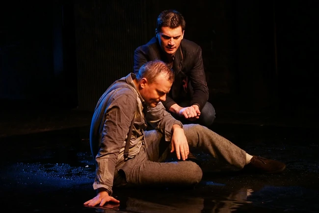 Pesonajele intră în scenă purtându-şi recuzita, şi-şi construiesc la vedere microclimatul definitoriu. Valentin Terente, în rolul unui coleg cu aspiraţii mărunte cară o roabă purtând o conversaţie derizorie ca şi îndeletnicirea asta de timp liber, pentru a-şi descuraja amicul. Actorul e perfect convingător. Liviu Pintileasa intră în scenă cu recuzita unui ipohondru , amator de practici orientale. Actorul creează din afectări ilare şi prefăcătorii respingătoare un portret original pe care ceva mă face să cred că nu l-a găsit descris aşa la Grişcoveţ.