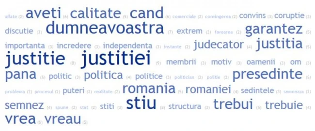 Cele mai folosite cuvinte de Traian Băsescu în primul său discurs ţinut la CSM în calitate de preşedinte al României