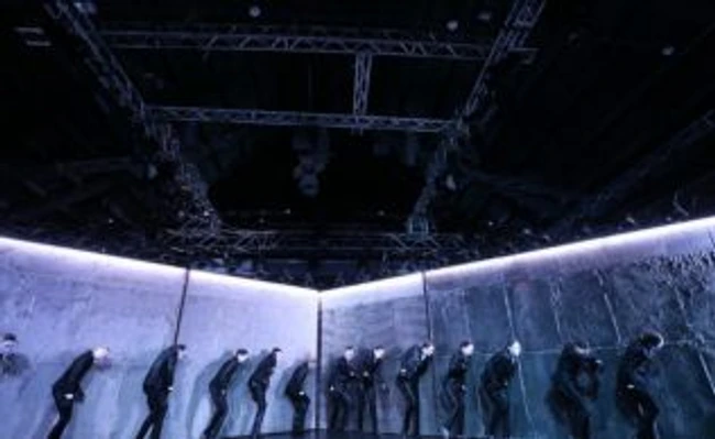 Toate acestea se regăsesc în spectacol. Am în vedere când spun asta zidul acela, la început în formă de V, care se tot închide şi deschide, sugerând o anumită nehotărâre, un entre-deux, zid ce reprezintă piesa esenţială din decorul conceput de Adrian Damian. Piesa aceasta de decor e însă doar unul dintre semnele prin care se concretizează sus-menţionata imobilitate în mişcare, excelent marcată de dansurile concepute de Andrea Gavriliu, dansate de ea şi de cele şaptesprezece alter-ego-uri ale personajului.