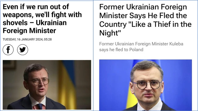 Fostul ministrul ucrainean de externe, Dmitro Kuleba, cel care, nu cu mult timp în urmă, declara că dacă nu va mai fi altceva la dispoziție, ucrainenii se vor lupta și cu lopețile, un fel de reeditare a vestitei cuvântări a lui Churchill: „Vom lupta pe plaje, vom lupta pe terenurile de debarcare..., nu ne vom preda niciodată”, este acum printre cei care pot fi încadrați la capitolul ”dispăruți în luptă”.