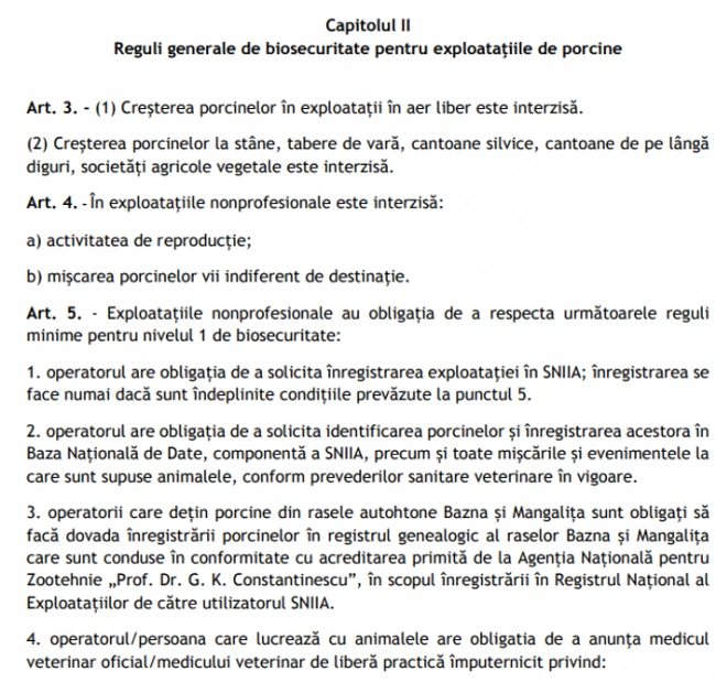 ANSVSA a publicat în dezbatere publică un ordin în care se precizează că în micile gospodării unde porcii sunt crescuţi numai pentru îngrăşare şi sacrificare pentru consum familial nu se mai permite activitatea de reproducţie iar mişcarea porcinelor vii indiferent de destinaţie.