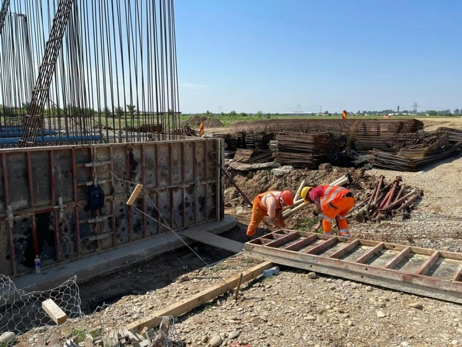 „8 dintr-un total de 40 de piloţi au fost foraţi, armaţi şi turnaţi şi la pasajul peste râul Sabar (km 94+322).”, subliniază Ionel scrioşteanu, adăugând că la pasajul peste calea ferată (km 93+396) au fost executaţi 16, dintre cei 256 de piloţi necesari.