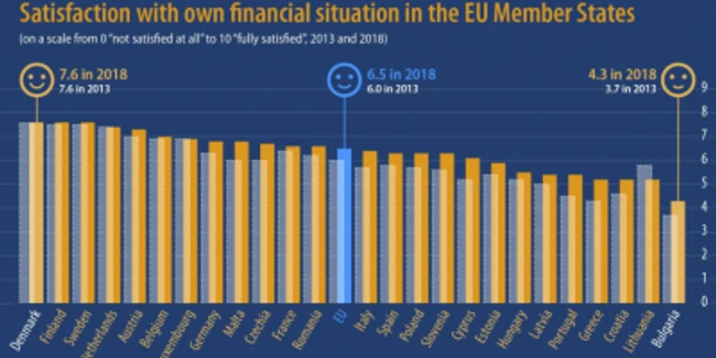 Cea mai mare satisfacţie cu privire la situaţia financiară o au danezii, finlandezii şi suedezii, cu o medie de 7,6 puncte. Ei sunt urmaţi de cetăţenii din Olanda (7,4), Austria (7,3), Belgia (7), Luxemburg (6,9), Germani şi Malta (ambele 6,8).