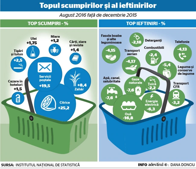 Ce produse s-au scumpit din decembrie până acum, în ciuda scăderii taxelor. Topul creşterilor şi reducerilor de preţuri - INFOGRAFIE