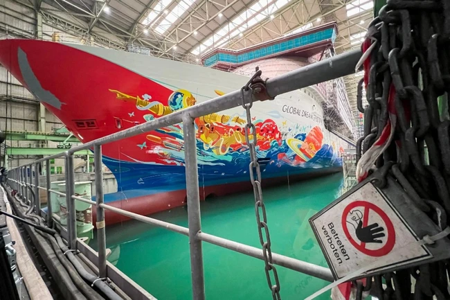 Nava a fost concepută pentru 9.000 de pasageri, iar construcţia sa era aproape finalizată într-un şantier naval de pe coasta baltică a Germaniei, dar constructorul, MV Werften, a declanşat procedura de faliment în ianuarie 2022, iar în prezent nu se găseşte un cumpărător pentru uriaşul vapor, potrivit The Guardian.