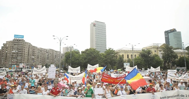 Peste 2.000 de români cu împrumuturi în franci s-au adunat în Piaţa Victoriei, solicitând iarăşi Guvernului, Parlamentului şi preşedintelui României să adopte legea conversiei creditelor din valută în lei, după ce au constatat că băncile nu sunt dispuse la negocieri reale cu clienţii pentru rezolvarea problemelor, cu toate că aceasta a fost recomandarea BNR şi a Parlamentului, de a se ajunge la o soluţie pentru împărţirea poverii între cele două părţi.