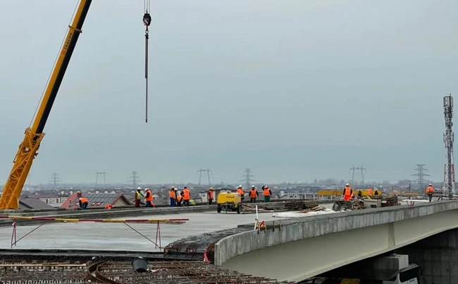 Totodată, continuă şi lucrările de realizare a suprastructurii la rampa de urcare dinspre Bucureşti.