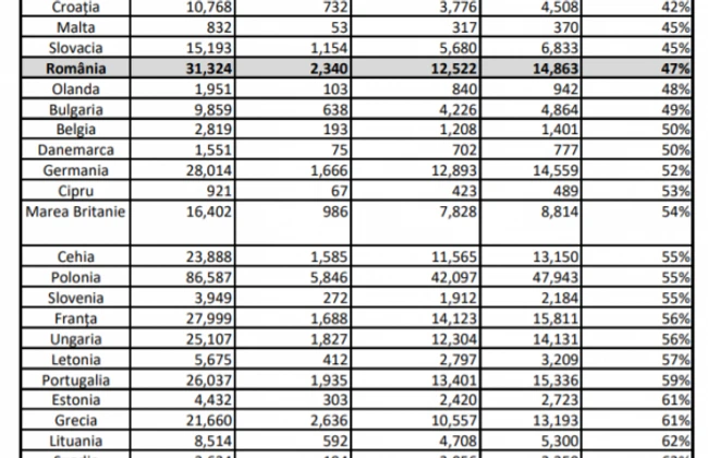 România ajunge astfel la un grad al absorbţiei de fonduri europene de numai 47%, în ultimul an al exerciţiului financiar multianual.