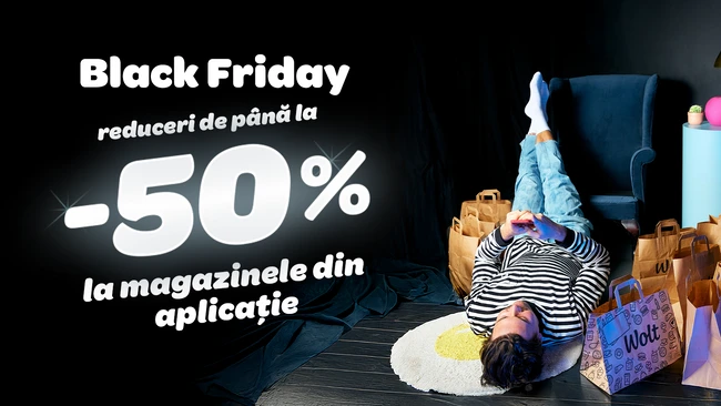 Black Friday pe Wolt înseamnă timp câștigat și bani economisiți, fără să ieși din casă. Cu cât comanzi mai repede, cu atât ai mai multe șanse să prinzi produsele dorite înainte de epuizarea stocurilor.