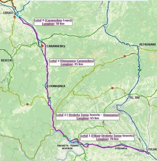 În acest moment, între Filiași și Caransebeș (179 km), sunt semnate 3 din cele 4 contracte pentru proiectarea drumului de mare viteză Filiași-Lugoj.