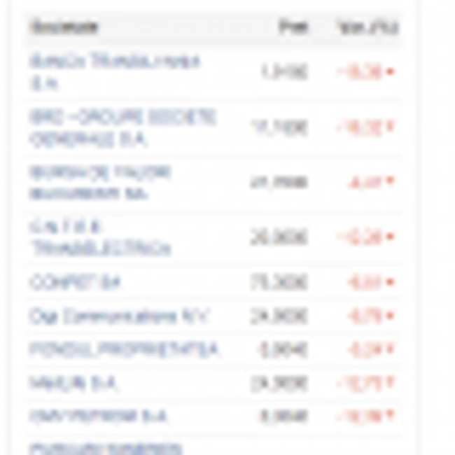 Prăbuşiri ale cotaţiilor au înregistrat şi Romgaz (8,57%), Transgaz (9,64%), Nuclearelectrica (5,35%), Fondul Proprietatea (5,24%), Digi Communication (8,79%), iar Conpet (6,81%).