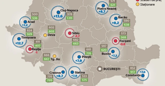 Harta preţurilor imobiliare: Clujul şi Timişul dau tonul scumpirilor, locuinţele din Sibiu s-au ieftinit - INFOGRAFIE