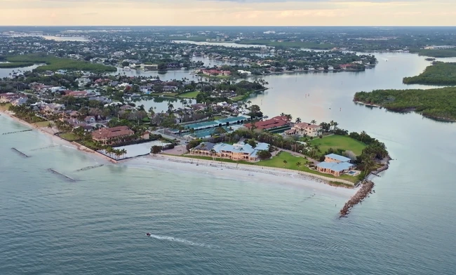 Amplasată pe o peninsulă în cartierul bogat Port Royal din Naples, Florida, Gordon Pointe se află într-un complex cu acces controlat, cu fața spre mare.