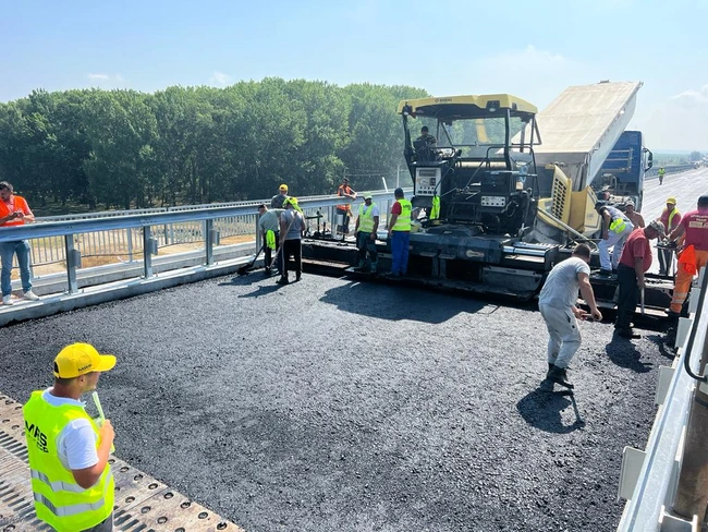 Reabilitarea podului peste brațul Borcea: Constructorul a început etapa de așternere a asfaltului
