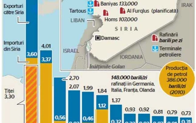 Ministrul pentru Petrol al Siriei a declarat că sancţiunile impuse de guvernele vestice asupra ţării sale au costat statul două miliarde de dolari în intervalul septembrie-ianuarie. Deocamdată, UE nu a impus un embargo, însă nu mai face tranzacţii cu 30 de companii petroliere siriene.