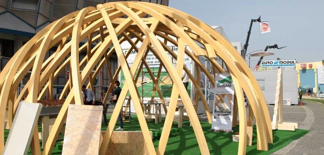Promotorii materialului numit Glulam - lemn lamelat încleiat - au adus la Romexpo o construcţie semisferică tip iglu, determinându-i pe mulţi vizitatori să se întrebe „Ce-o mai fi şi asta?“.