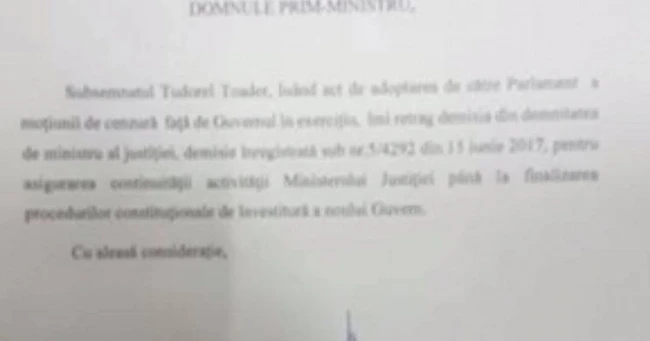UPDATE Cum arată o cerere de retragere a demisie. „Subsemnatul..., luând act de adoptarea de către Parlament a moţiunii de cenzură faţă de Guvernul în exerciţiu, îmi retrag demisia din demnitatea de ministru al ..., demisie înregistrată sub nr.... pentru asigurarea continuităţii activităţii Ministerului...până la finalizarea procedurilor constituţionale de învestitură a noului Guvern“