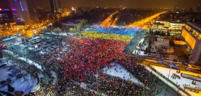 O fotografie care a făcut înconjurul lumii: sute de mii de români protestând în frig faţă de OUG 13. Foto: Inquam Photos
