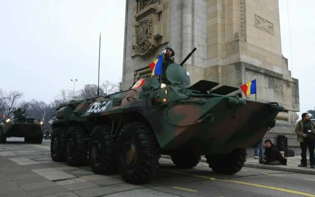 Zeci de persoane aflate în zona Arcului de Triumf, pentru a lua parte la manifestaţiile organizate de Ziua Naţională, au scandat „Jos Băsescu!", „Ruşine! Ruşine să vă fie!" dar şi „România! România! Ole! Ole!", moment în care muzica militară care venea din difuzoarele amplasate în Piaţa Arcul de Triumf a fost înlocuită cu muzică ambientală.