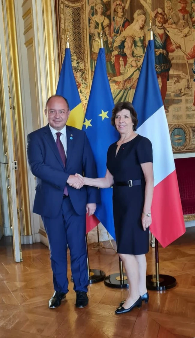 Ministrul francez de externe a exprimat aprecierea pentru modul în care România a acordat sprijin Ucrainei, după ce ministrul Aurescu a prezentat eforturile ţării noastre în acest sens. Şeful diplomaţiei române a subliniat necesitatea sprijinirii Republicii Moldova pentru a face faţă diverselor efecte ale crizei generate de agresiunea Rusiei şi a reiterat sprijinul pentru integrarea europeană a Ucrainei, Republicii Moldova şi Georgiei.