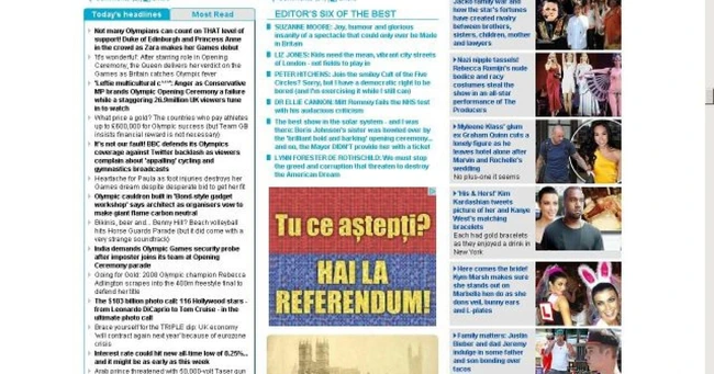 0Pe site-ul britanic dailymail.co.uk, campania electorală nu s-a încheiat încă. Explicaţia: banerul care îndeamnă oamenii să se prezinte la vot tronează chiar pe pagina principală a site-ului.