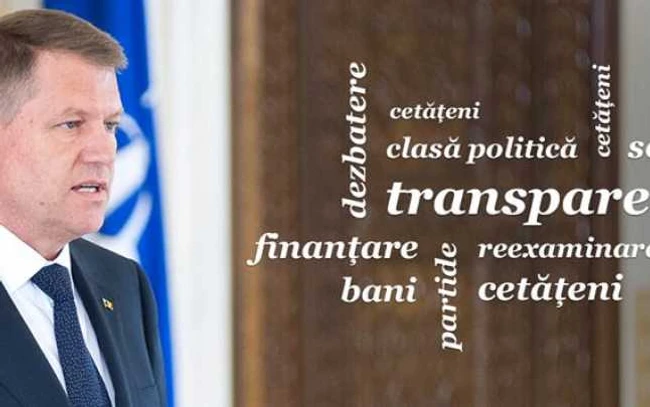 „Schimbarea clasei noastre politice, atât de aşteptată de cetăţeni, nu se poate face fără transparenţă în gestionarea banilor primiţi de partide. De aceea, am trimis Parlamentului spre reexaminare Legea finanţării partidelor politice şi a campaniilor electorale. O lege atât de importantă trebuie să fie bine dezbătută şi limpede formulată, ca să nu lase loc de interpretări sau derapaje“, a scris Iohannis, pe Facebook.