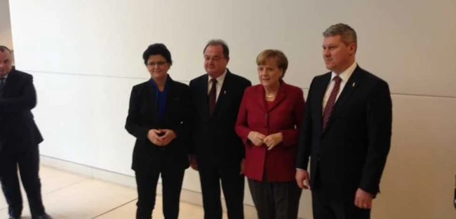 0Delegaţia PDL, condusă de Vasile Blaga, s-a întâlnit astăzi pentru scurt timp cu Angela Merkel, cancelarul Germaniei, în decursul vizitei efectuate la Berlin, la invitaţia formaţiunii creştin-democrate, CDU.