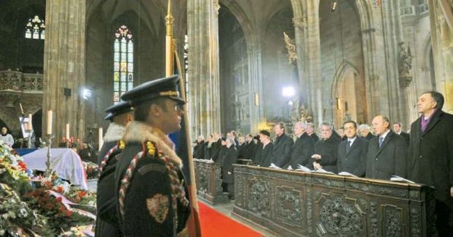 Printre foştii lideri prezenţi la ceremonia religioasă din Catedrala pragheză „Sfântul Vitus" s-au numărat şi fostul preşedinte al Poloniei Lech Walesa, fostul preşedinte al SUA Bill Clinton, foştii preşedinţi ai Bulgariei Jelio Jelev şi Petar Stoianov, fostul lider al Sloveniei Milan Kucan şi fostul preşedinte moldovean Petru Lucinschi. Soţilor Bill şi Hillary Clinton (ea reprezentând SUA la ceremonia funerară) le-a stat alături Madeleine Albright, fostul secretar de stat american de origine cehă, bună prietenă a lui Havel.