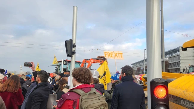 0Fermierii au venit miercuri, 17 decembrie, cu utilaje agricole și tractoare în fața Parlamentului European din Strasbourg. În timp ce manifestațiile continuă și joi, în toată Franța, blocând mai multe autostrăzi, fermierii din întreaga Europă, inclusiv din România, protestează și în Belgia, la Bruxelles, împotriva acordului Mercosur.