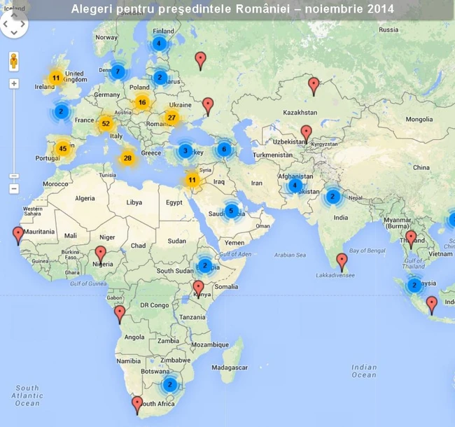 HARTĂ Top 10 comunităţi româneşti din lume şi oraşele în care votează la alegerile prezidenţiale din 2014