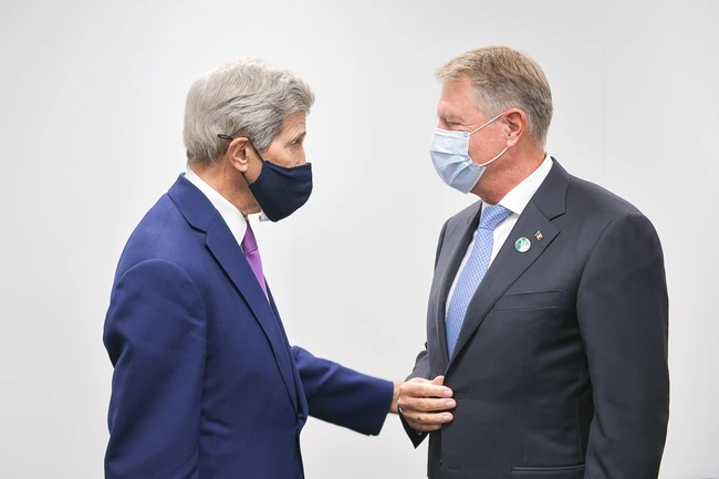 „Preşedintele României, Klaus Iohannis, a avut marţi, 2 noiembrie 2021, o întrevedere cu Reprezentantul Special al Preşedintelui Statelor Unite ale Americii pentru Climă şi Membru al Consiliului Naţional de Securitate al SUA, John Kerry, în marja Conferinţei Naţiunilor Unite privind Schimbările Climatice (COP26). Combaterea schimbărilor climatice este o prioritate atât pentru România, cât şi pentru Statele Unite ale Americii, ambele ţări fiind angajate să reducă emisiile de gaze cu efect de seră. Astfel, discuţia dintre Preşedintele României şi oficialul american s-a axat pe cooperarea în ceea ce priveşte dezvoltarea, fabricarea şi utilizarea tehnologiilor cu emisii scăzute de dioxid de carbon. De asemenea, s-a discutat şi despre consolidarea cooperării bilaterale în domeniul energiei nucleare şi regenerabile, precum şi în ceea ce priveşte stocarea energiei şi electrificarea transporturilor”, arată un comunicat al Administraţiei Prezidenţiale.