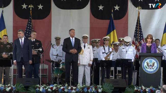 În discursul său de la Ambasada Statelor Unite din România, Klaus Iohannis a transmis faptul că se simte bucuros că se află acolo pentru a putea sărbători încp o dată ziua Statelor Unite.