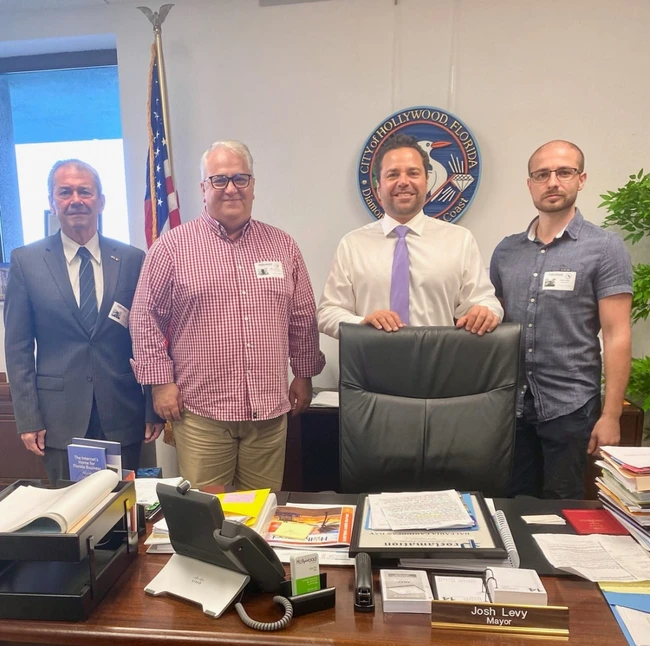 „La ultima deplasare externă, prilejuita de întâlnirea cu comunităţile de români din statul Florida, una dintre întrevederile pe care le-am avut a fost cu primarul oraşului Hollywood, Josh Levy. În contextul unui dialog fructuos cu edilul american, am discutat inclusive despre necesitatea colaborării cu numeroasele comunităţi de imigranţi, printre acestea fiind şi cea a românilor din Hollywood, dar şi din întregul stat Florida. Având la bază un proiect cultural iniţiat împreună cu Consulatul General al Romaniei la Miami şi susţinut de omul de afaceri de origine română Dragoş Sprînceană, i-am propus primarului din Hollywood să amplaseze în unul dintre locurile publice din oraşul american, un simbol al comunităţii române, cum ar fi o replică a „Coloanei infinitului” sau a „Mesei tăcerii”. Adică un element de reprezentare identitară pentru numeroasa comunitate româneasca din această urbe multiculturală”, explică Viorel Badea, preşedintele PNL Diaspora şi şef al Comisiei de cultură din Senat, într-un comunicat de presă.