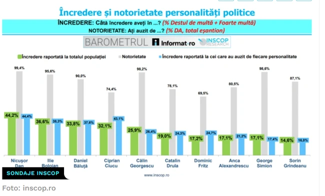 Directorul INSCOP Research, Remus Ștefureac, a explicat că nivelurile de încredere trebuie interpretate împreună cu notorietatea: „Personalitățile mai puțin cunoscute au, firesc, o bază mai mică de evaluare. De asemenea, întrebările despre încredere nu reflectă neapărat intenția de vot – un respondent poate avea încredere în mai multe personalități simultan.”