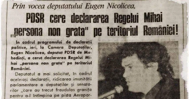 în 1994, la câteva zile după ce fostul monarh Mihai I fusese oprit pe Aeroportul Otopeni şi împiedicat să intre în ţară. Nicolicea a cerut de la tribuna Parlamentului ca „cetăţeanul Mihai Hohenzollern“ să fie declarat „persona non grata“, potrivit Recorder.ro. Mai mult, PSD-istul, cunoscut şi în prezent pentru jignirile pe care le aduce adversarilor politici, voia ca doi parlamentari ai Opoziţiei, Dinu Patriciu şi Ticu Dumitrescu, să rămână fără imunitate pentru că şi-au permis să-l întâmpine pe fostul suveran.