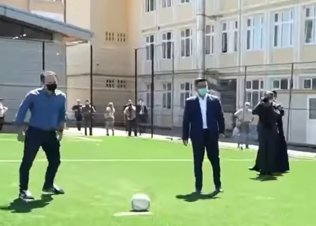 Premierul Cîţu, după ce a jucat fotbal cu elevii de liceu din Satu Mare: „M-au alergat puţin băieţii” - VIDEO
