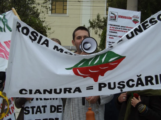 De asemenea, persoanele care au venit să susţină retragerea proiectului Roşia Montană au arătat că nu există argumente pro-exploatare, că "cianura nu se duce niciodată" sau că "după 16 ani firma care exploatează va da faliment şi va lăsa gunoiul" în ţară.