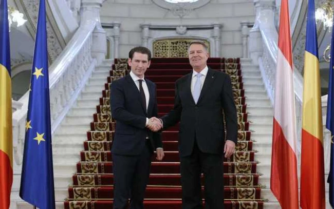 0Cancelarul Austriei, Sebastian Kurz, s-a întâlnit vineri cu preşedintele Klaus Iohannis pentru a preda simbloic preşedinţia Consiliului UE. Acesta l-a felicitat pe Klaus Iohannis pentru lupta privind statul de drept şi democraţia şi a avertizat cu privire Ordonanţa pentru măsuri fiscale şi consecinţele pe care le-ar putea avea supra investiţiilor străine în România.