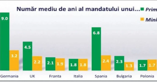 1. România are gradul cel mai mare de instabilitate ministerială, urmată la mare distanţă de Polonia şi Italia. În toate cele şase domenii analizate, România a schimbat din 1990 până în prezent circa 150 de miniştri, de trei ori mai mulţi decât Germania.