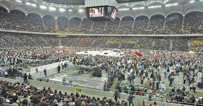 La tribuna VIP, lucrurile arătau puţin altfel. Costume fine, prezenţe feminine şi oameni amabili, care îi salutau până la pământ pe cei mai cunoscuţi dintre parlamentari. Pe scări, Marian Vanghelie se lăuda în faţa jurnaliştilor: „15.000 am adus în seara asta, aici!" Înăuntru, liberalul Ludovic Orban le explica colegilor de partid cum am fost furaţi de arbitrul scoţian, iar greii PSD, Miron Mitrea şi Marian Oprişan, însoţiţi de progresiştii Eugen Nicolicea şi de Miki Şpagă, aveau bisericuţa lor separată. În tribune, la fel, atmosferă de meci. Doar că, bannerele cu „Hai România!" au fost înlocuite cu „Împreună învingem", iar scandări precum „Pe ei, pe mama lor", au fost surclasate de „USL, USL".